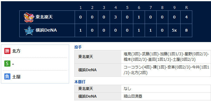 4位 121 53 67 *1 0.442 *0.0 538 599 -61 109 0.264 4.73 DeNA