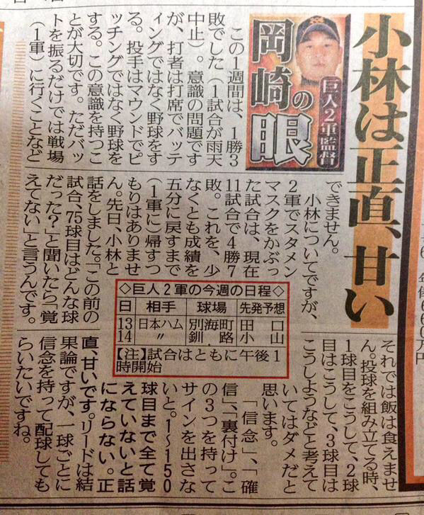 - 滅多打の菅野を引っ張るとは中畑が良く見える