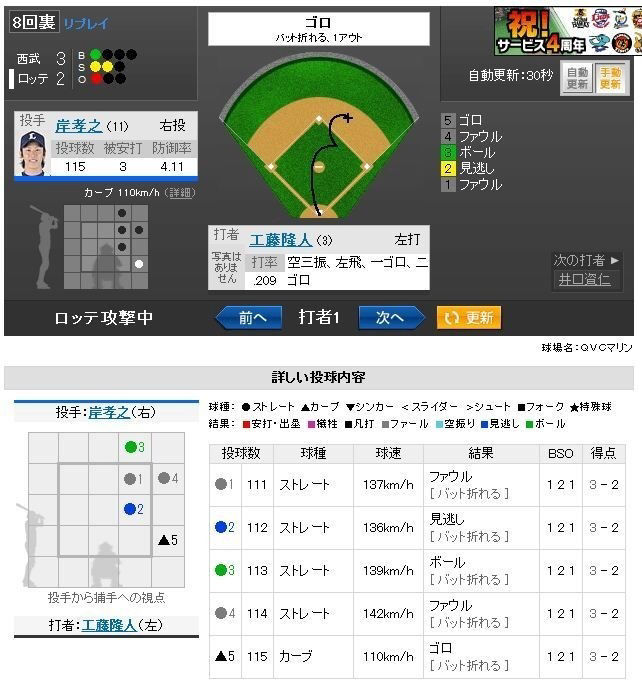 - こうなったら1人七球粘って八回セットアッパー勝負で行こう。